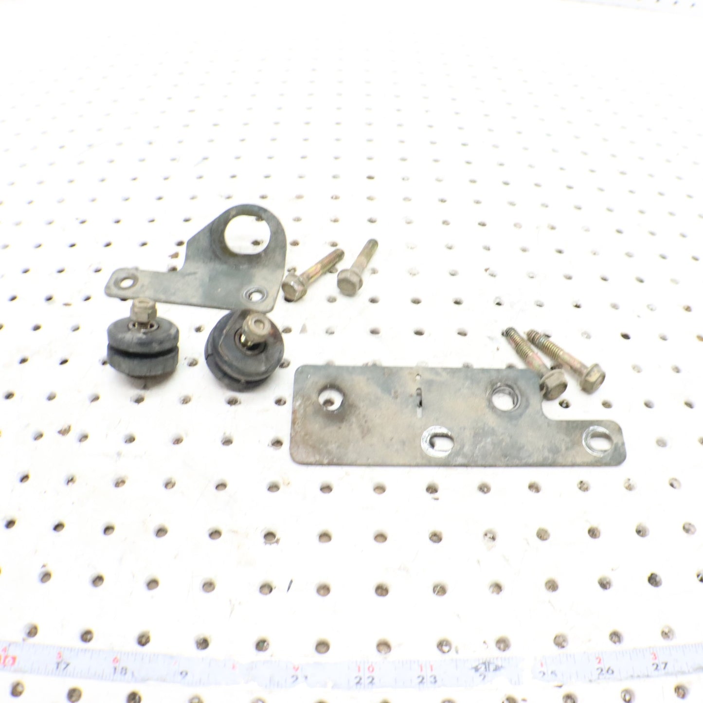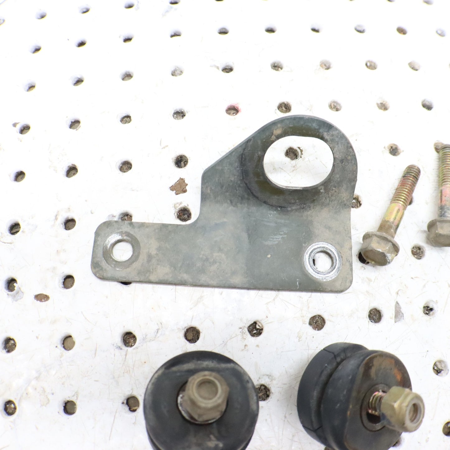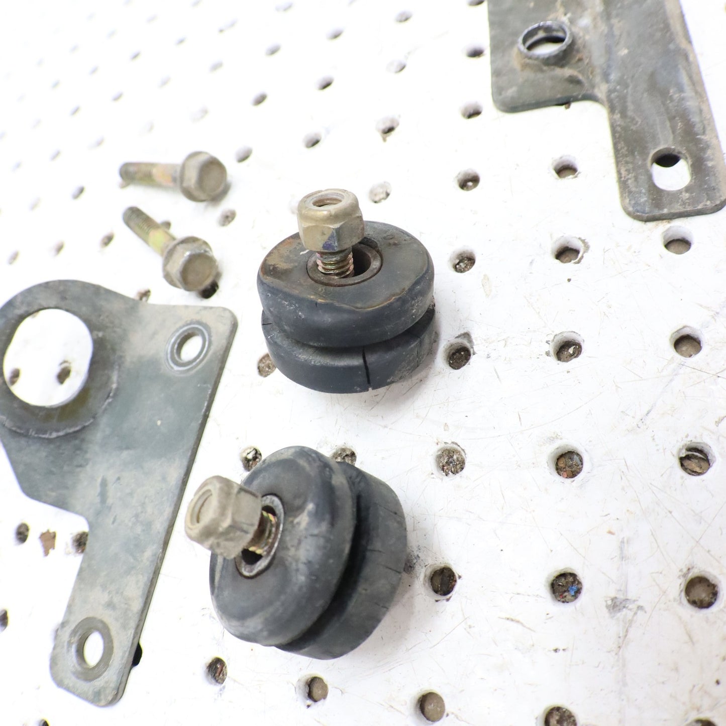 THIS PART IS IN USED CONDITION WITH WEAR AND COSMETIC FLAWS. BRKT-SILENCER MNT,PLATED 5248723 SILENCER BRACKET, FRAME, PLTD 5241663 VIBRATION DAMPENER 5412508 WASHER, RUBBER 5410436
